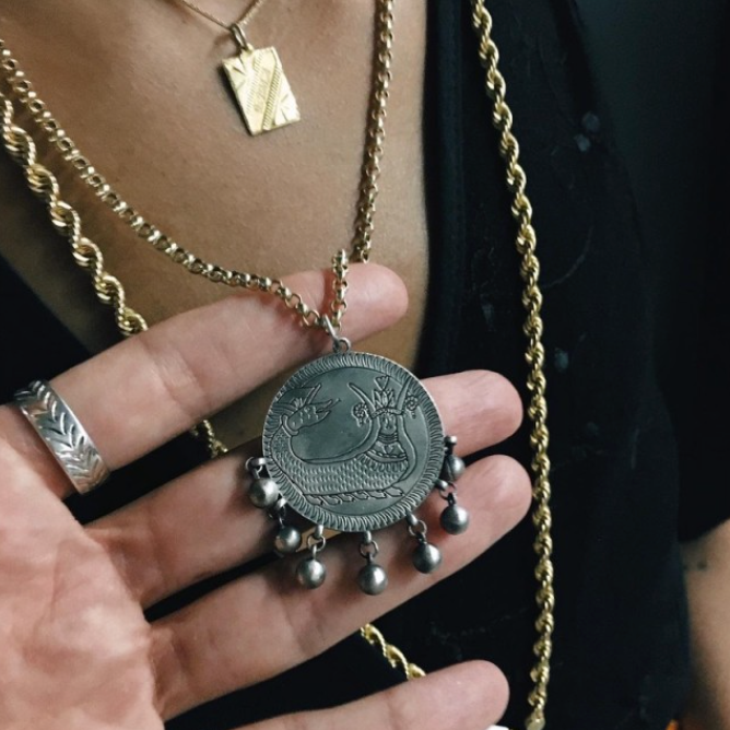Vintage Şahmeran Figürlü Gümüş Kolye Ucu