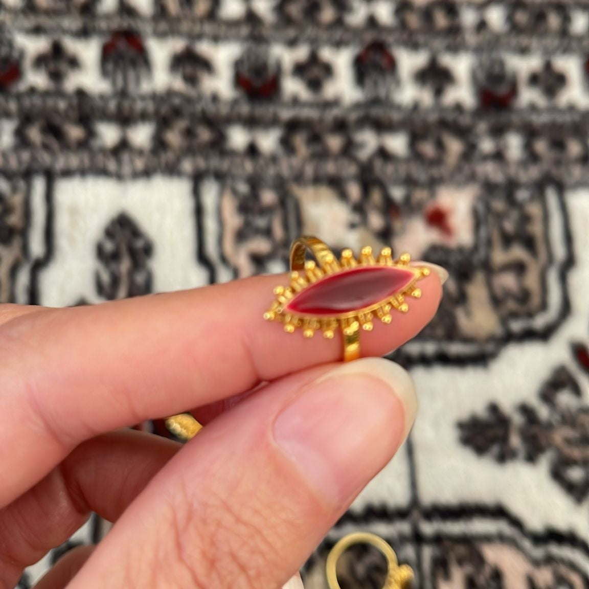El işçiliğiyle hazırlanan Vintage Markiz Yüzük, pirinç üzerine has altın kaplama tekniğiyle üretilmiştir. Markiz kesim taşı sayesinde ışığı en şık haliyle yansıtır. Nostaljik ruhu modern bir duruşla buluşturan bu özel tasarım; günlük stilinize ya da özel günlerinize zamansız bir dokunuş katıyor.