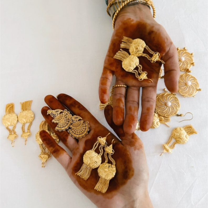 ilmek ilmek küpe, el yapımı küpe, pirinç küpe modelleri, altın kaplama küpe, antik görünümlü takı, zarif el işçiliği küpe, pirinç takı koleksiyonu, nostaljik takı modelleri