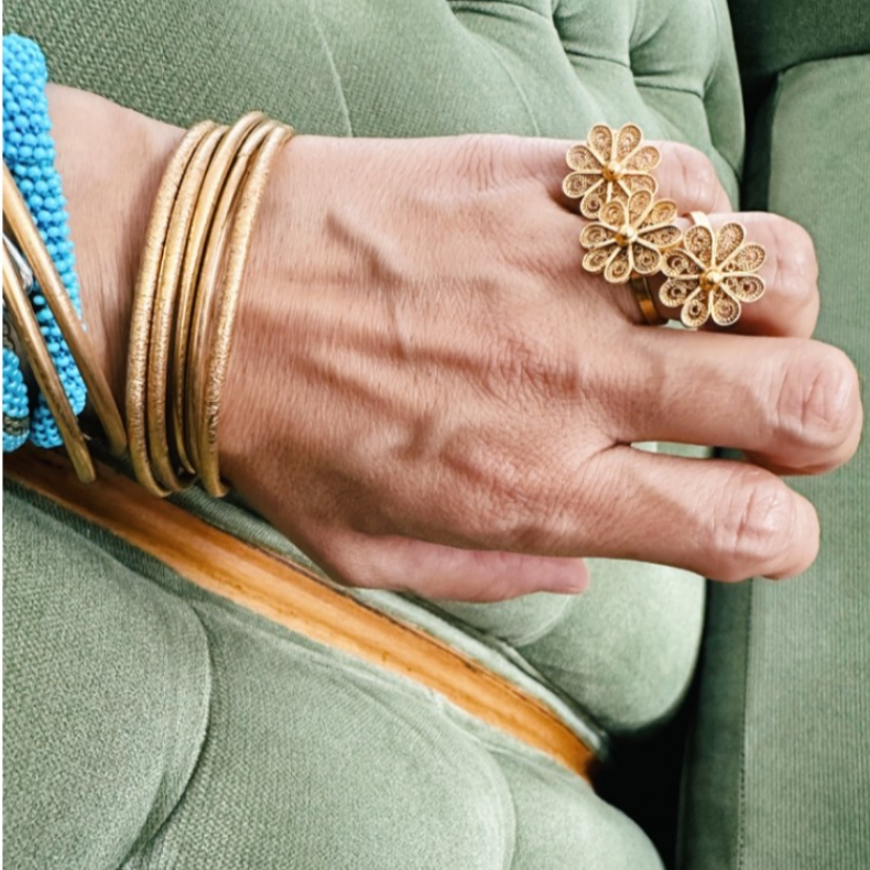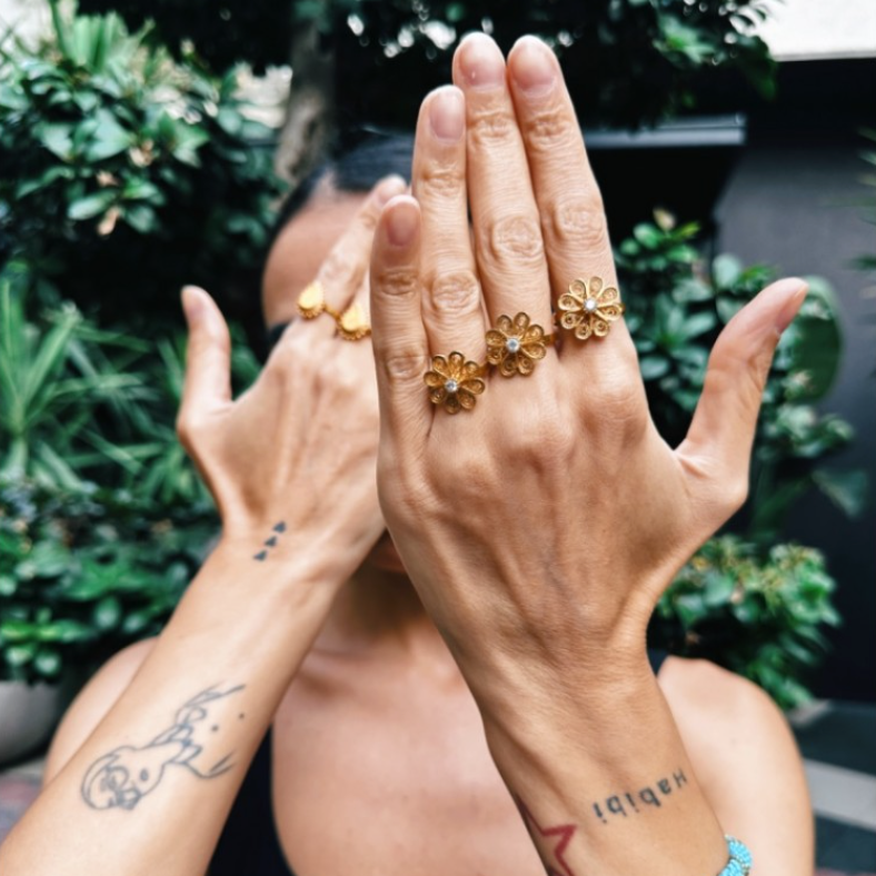Papatya Yüzük, Anadolu’da saflığın, içtenliğin ve temiz kalbin sembolü olarak bilinir. Pirinç üzerine has altın kaplama tekniğiyle ve ustaların ilmek ilmek el işçiliğiyle üretilen bu özel parça, kadim gelenekten modern zamana uzanan bir köprü kurar. Zirkon taşlı veya taşsız seçenekleriyle sunulan bu yüzük, masumiyet kadar gücü de simgeler; her parmakta kendi hikâyesini anlatır.