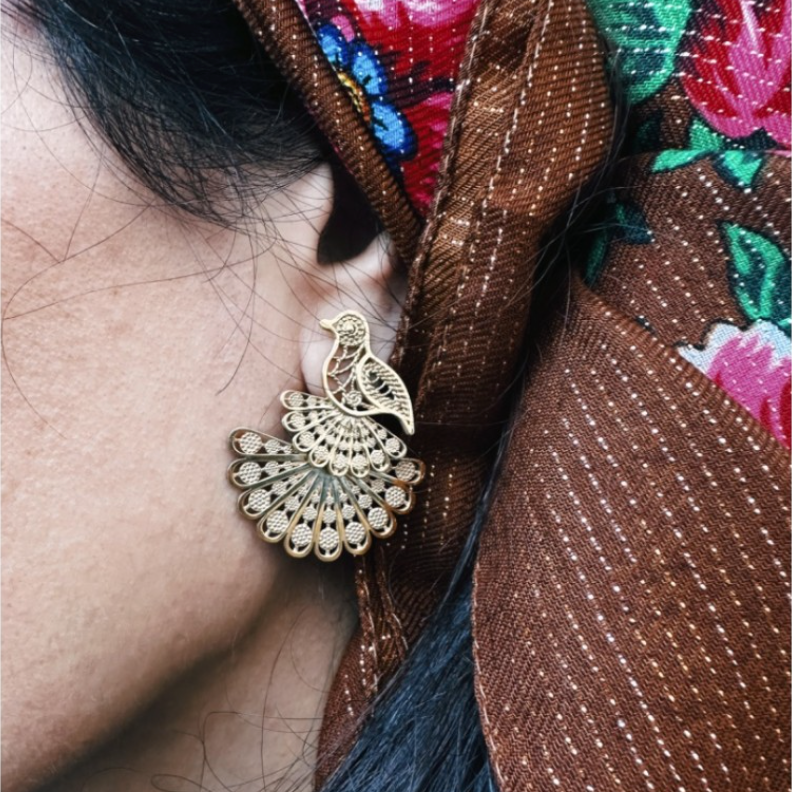 Tavus Kuşu Küpe – Gümüş Üzeri 18K Altın Kaplama