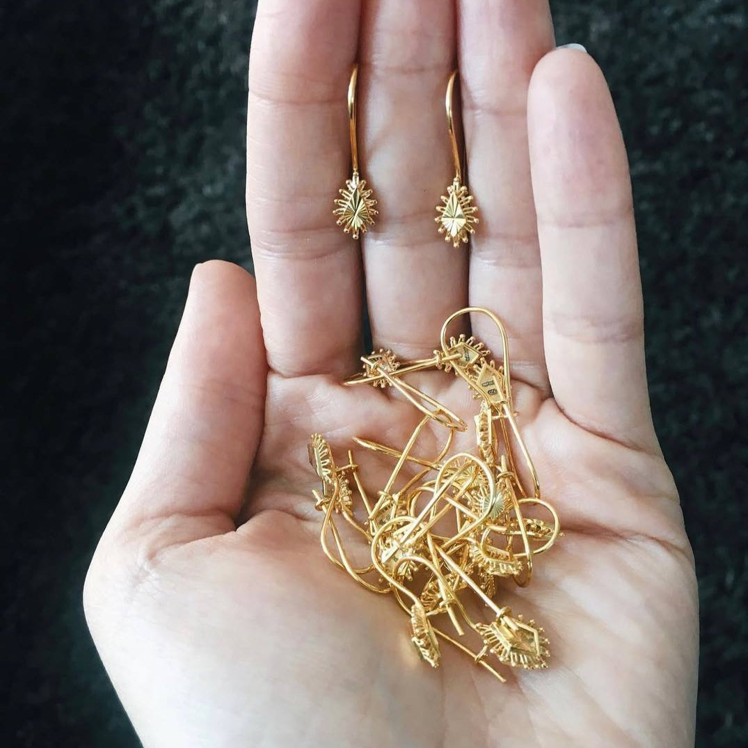 Geleneksel kalem işi detaylar, her bir küpeye özgün bir karakter katar.